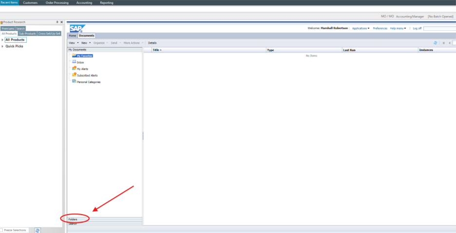 Step 4: Click Folders in the left-hand navigation